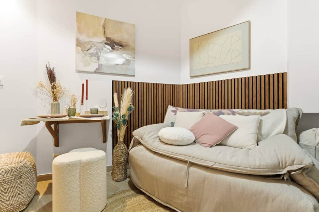 • Un espace de vie modulable : L'agencement intègre une table repas rabattable (pour les repas sans perte d'espace) ainsi qu'un coin bureau dédié, adapté au télétravail.