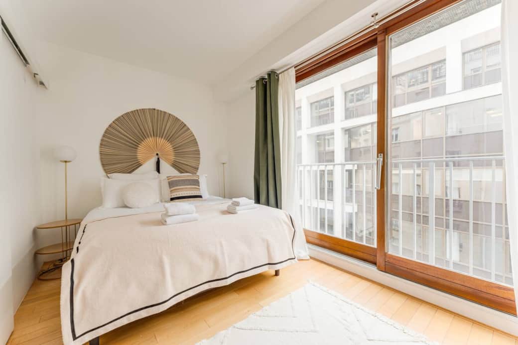 🛏 Chambre élégante avec lit double confortable et rangements pour un séjour sans contrainte.
